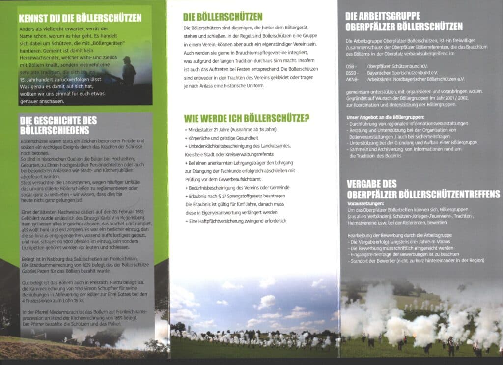 niedergelegt, um an die Schrecken von Krieg und Verfolgung zu erinnern. Schließlich ist das Gerät zum Böllern auch keine echte Waffe. In dieser Form verstehen die Schützen ihr ureigenes Brauchtum.Sie betreiben das Abtun von Böllerschüssen nur für einen begrenzten und kurzen Zeitraum. Mit Rücksicht auf die Ruhezeiten werden teils Jahrhunderte alte Traditionen gepflegt. Die meiste Zeit aber, wird dem geselligen Beisammensein in einer offenen Gesellschaft gewidmet. Es werden eben Volksfeste gefeiert wie sie schon immer gefeiert wurden.