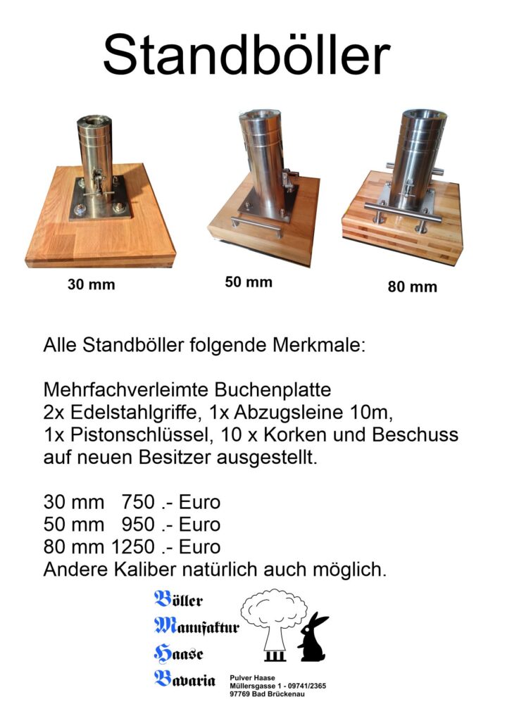 Die Mitglieder der Böllerschützenabteilung des Trachtenverein Uffenheim 2011 e. V. haben Interesse an gebrauchten und neuen Hand-, Schaft- und Standböllern sowie Böllerkanonen und dem dazugehörigen Zubehör.